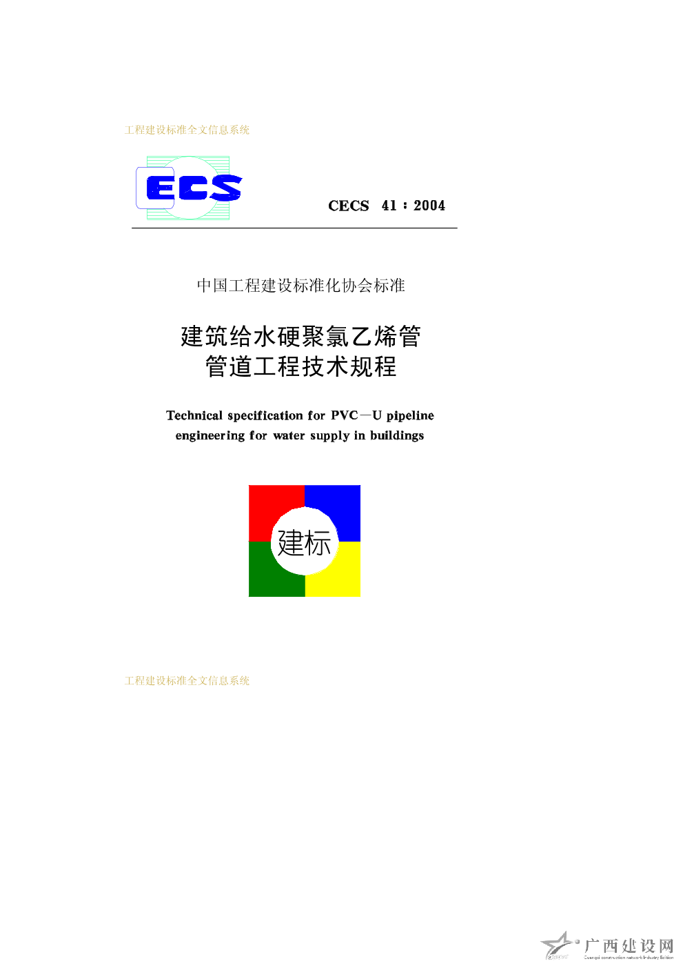 建筑給水硬聚氯乙烯管管道工程技術(shù)規(guī)程 CECS41∶2004