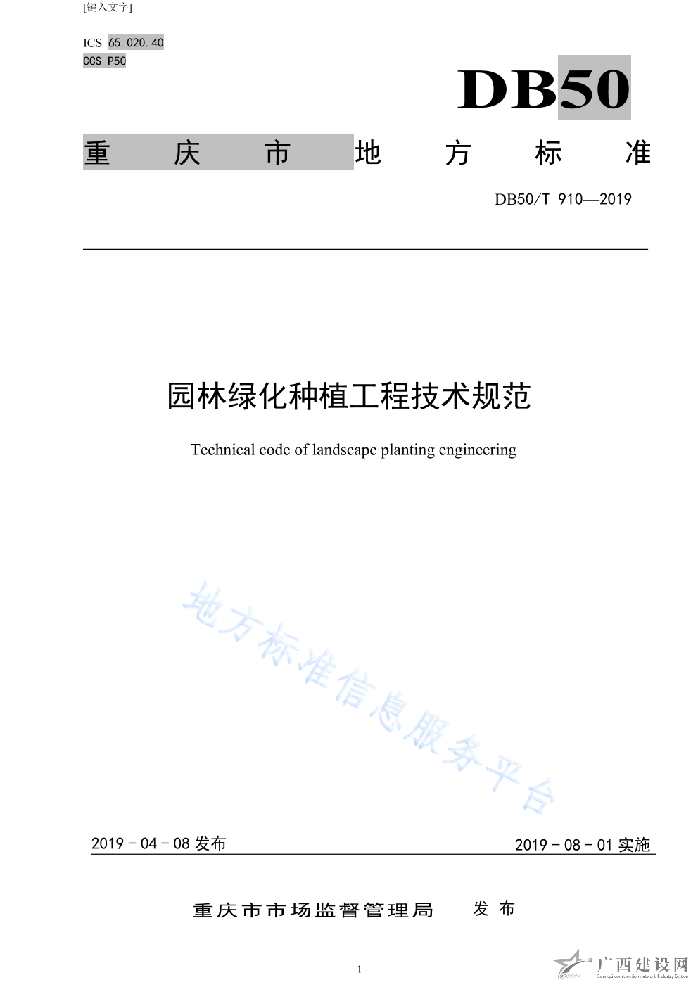 DB50 T910-2019園林綠化種植工程技術(shù)規(guī)范