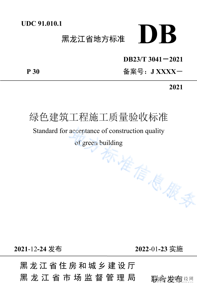 DB23 T 3041—2021綠色建筑工程施工質量驗收標準