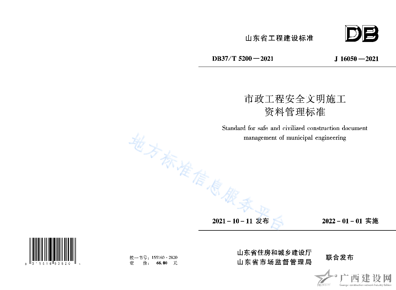 DB37 T5200-2021市政工程安全文明施工資料管理標(biāo)準(zhǔn)