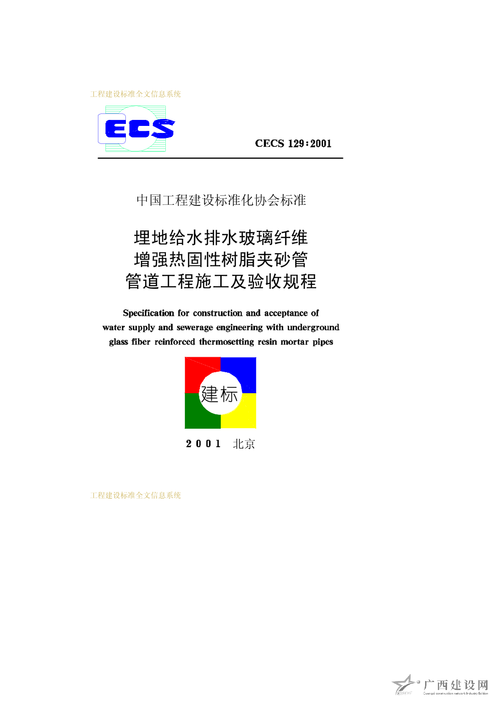 埋地給水排水玻璃纖維增強熱固性樹脂夾砂管管道工程施工及驗收規程 CECS129