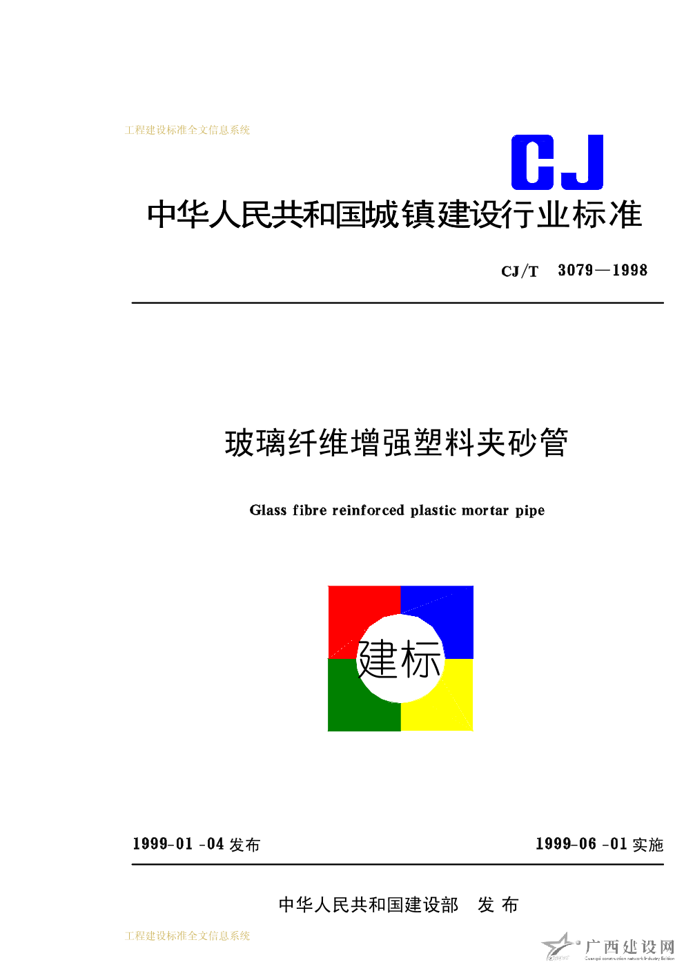 玻璃纖維增強塑料夾砂管 CJ/T3079-1998