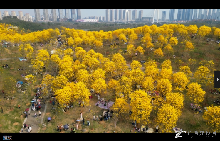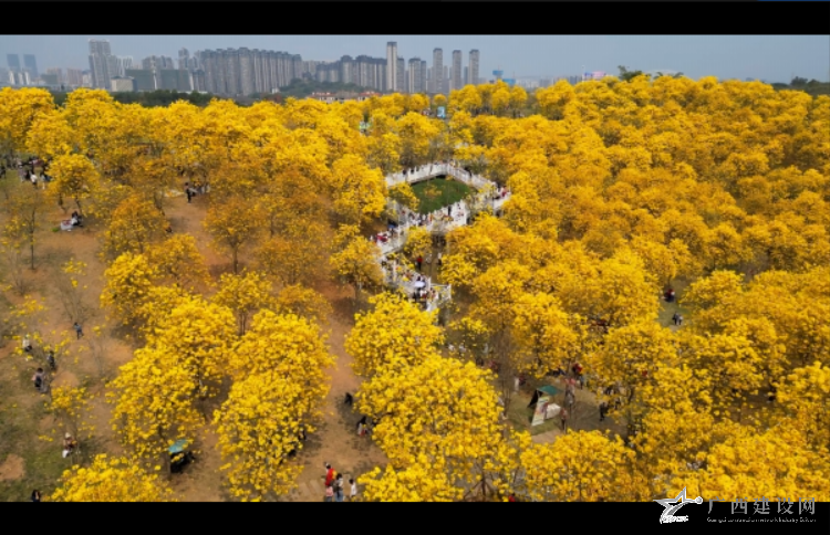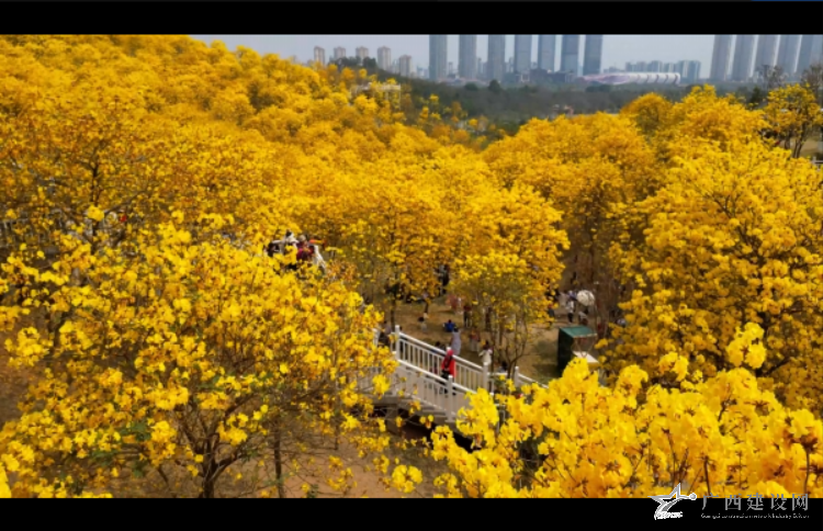 【城鄉風光】南寧市青秀山風鈴谷黃花風鈴木航拍(1)
